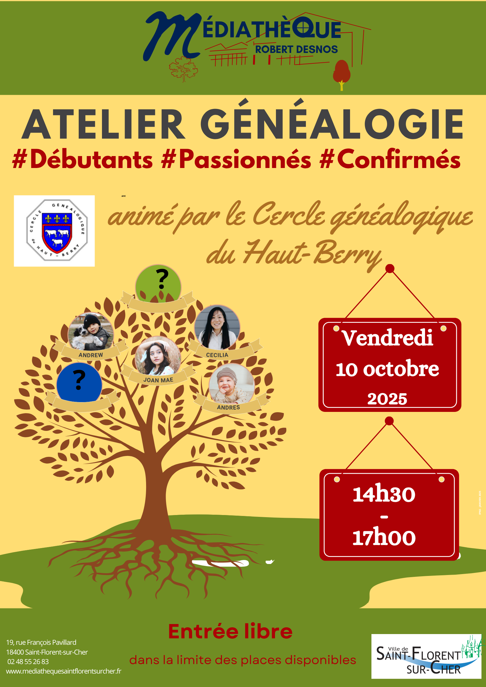 Le Cercle généalogique du Haut-Berry anime un atelier de généalogie pour les débutants le vendredi 10 octobre de 14h30 à 17h.