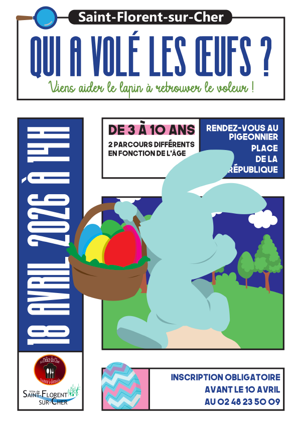 La mairie de Saint-Florent-sur-Cher a le plaisir de vous convier à un événement exceptionnel et festif : une grande chasse aux œufs destinée aux enfants de 3 à 10 ans.