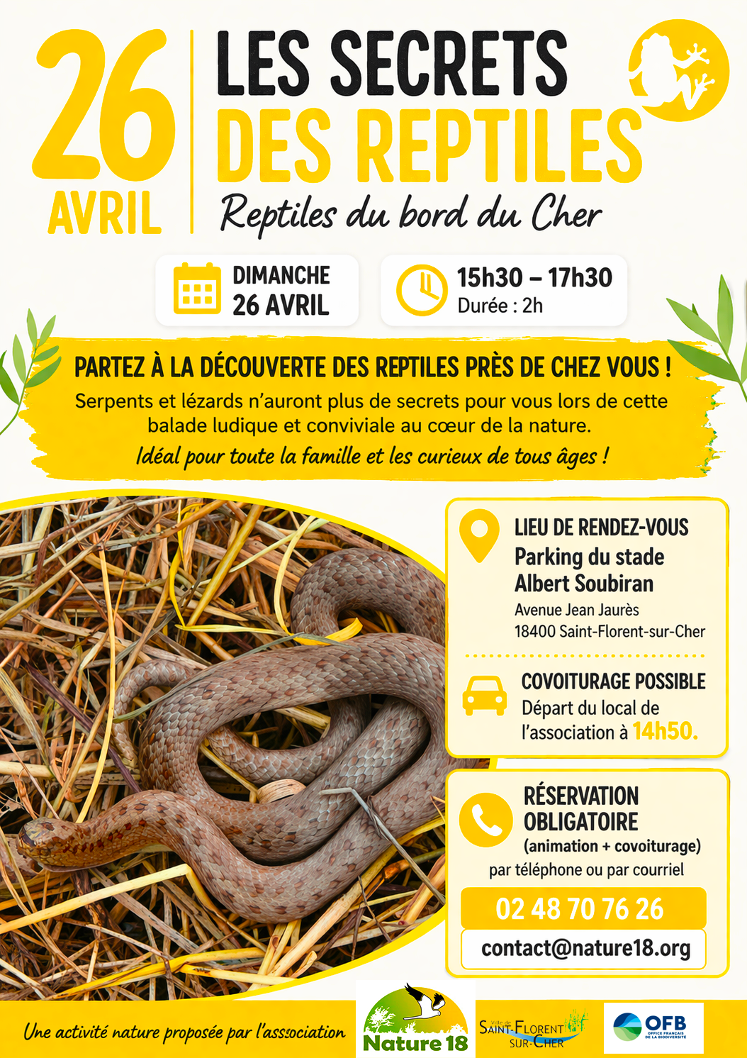 Réservation (animation + covoiturage) obligatoire par téléphone au 02.48.70.76.26 ou par courriel à